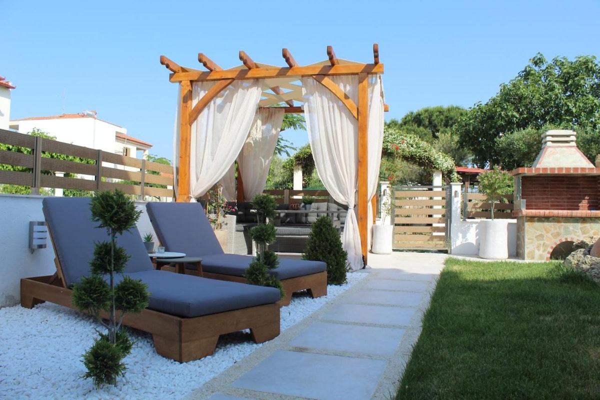 Unique villa total 80m2, just 60m away walk from the crystal clear sea of Nikiti, right next to Kukunari beach bar, Ergon beach house, AMO beach bar and only 1 km walk away from center of Nikiti! Freshly renovated in 2025 with all the comforts that every family needs. The villa can host easily up to 6 adults + 2 kids. Anytime hot water 24/7. Stable internet connection of 150-200 mbps, 2x smart TVs. Make your holidays special! Enjoy your summer! Celestial Luxury Nikiti