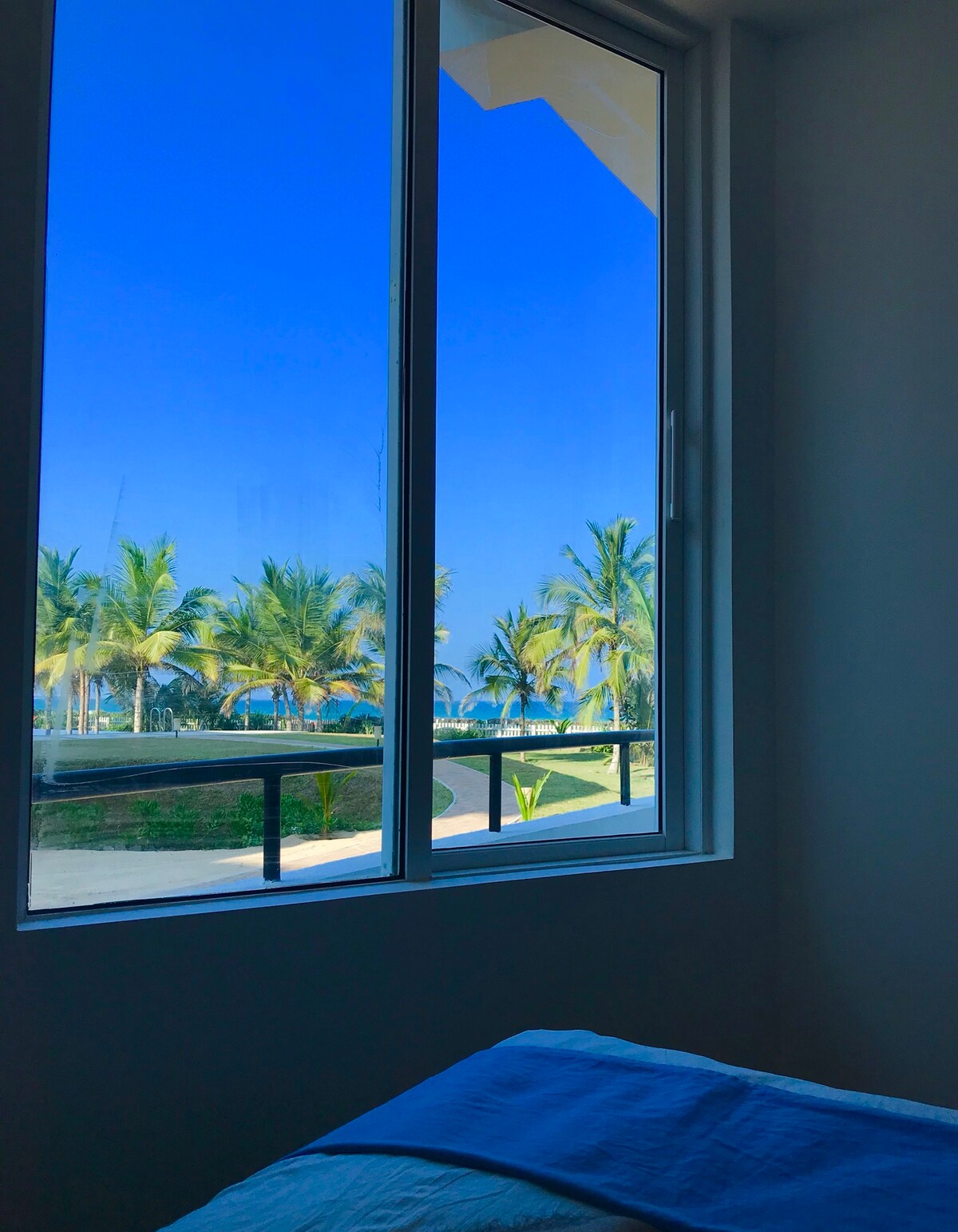 Book now for an unforgettable beachfront experience! - Beachfront Condo (120m² Single level 3BR, 2BA) - Full-sized kitchen to cook or order from Ocean Café - Balcony with 180° view of the Sea, Garden & Pool - Easy access to private beach -residents-only - Outdoor Swimming Pool - Mini-Gym - Gated compound with 24hr surveillance and parking - Located in a quiet coastal village 15km to downtown - Extremely safe neighborhood - Free fast Wi-Fi (FTTH) - Fun activities & things to do for everyone