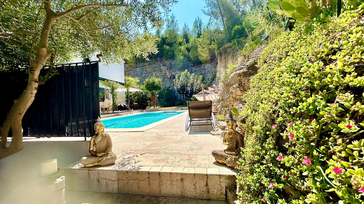 "Treat yourself to a romantic break in a 65 m² loft, with sauna and balneotherapy to relax the body and soothe the mind. The patio and private terrace invite you to savor the moment, while the outdoor canopy bed promises naps and nights under the stars. Shared pool access, privacy preserved. In front of you, the rocky mountain is revealed, lulled by the song of cicadas. The magic works, time suspends its breath in this cocoon of love."