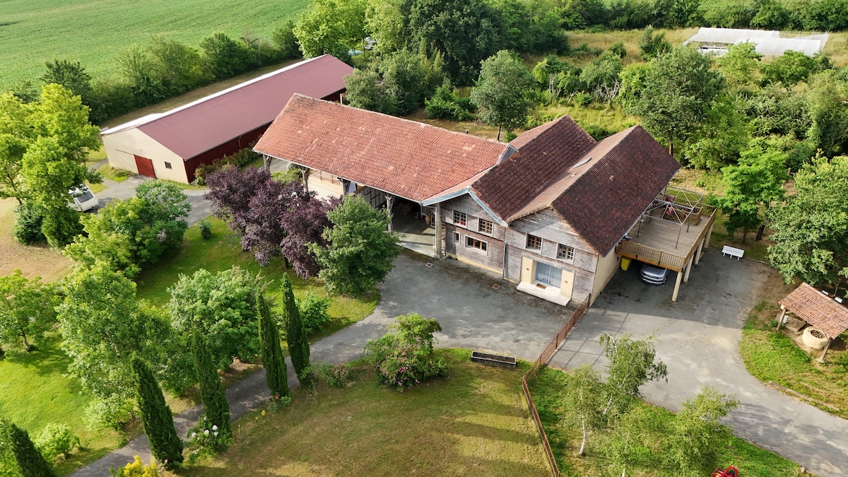 230 m2 house at the end of a private road, on 1 hectare of land, 10 min walk to the shops of the center of Riscle, 5 min by bike. Enjoy a holiday in the countryside but close to shops. When opening the shutters, it is not uncommon to see deer! Spacious house with 5 bedrooms including 2 master suites, office, living/dining room, flat screen TV lounge. Outdoor barn: ping pong table, petanque, dartboard. **Unfenced land **Pets not allowed