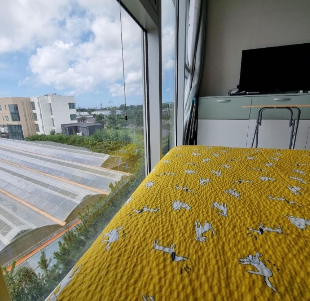 It is a comfortable accommodation where you can lie in bed and look at Hallasan, and it is located in the city hall, the center of Jeju, and has good access to famous places in the city such as Dongmun Traditional Market. There are many convenient facilities such as restaurants, movie theaters, and hospitals within a 10-minute walk. It is also a good location for those who do not have a car as it is a place where buses to all areas of Jeju pass through.