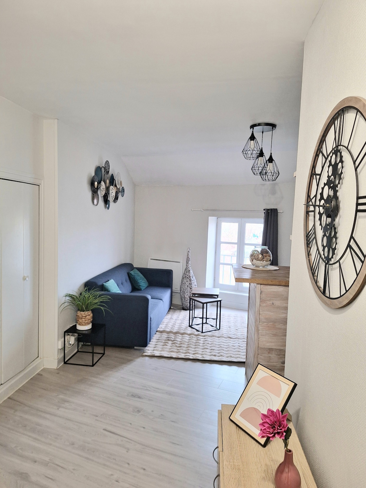 Beautiful apartment in the center with views of Sancy and Livradois Forez Living room with TV lounge, kitchenette, bathroom, toilet and bedroom. Ideal for holidays or business trips A75: 3 min, SNCF train station 500 m, charging station 50 m, Monoprix 20 m, bakery 50 m, Zenith and Grande Halle d'Auvergne 15 min Numerous restaurants, movie theaters, supermarkets Departure for many fishing and discovery hikes in the Auvergne. Toilet linen, kitchen linen and bed made upon arrival included in the rate WiFi
