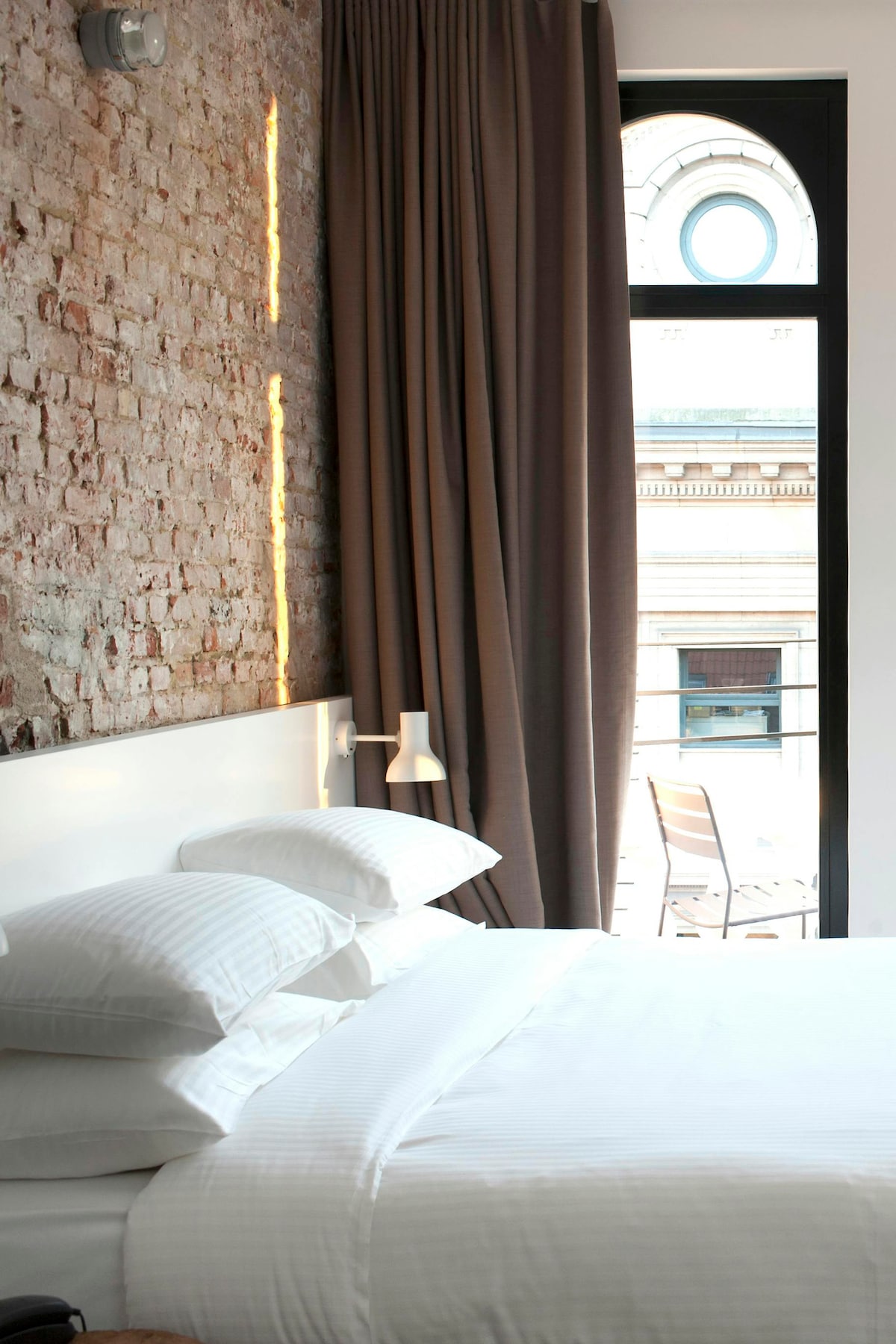 Welcome to B in Antwerp! - Spacious room with three large windows and majestic curtains. - Extra comfortable bed along with an open bath for relaxation. - Stylish historical building on Amerikalei street in trendy South Antwerp. - Close to major museums, shopping streets, and the city’s historical center. - Complimentary coffee and refreshments available in the lounge. - Free broadband Wi-Fi in all rooms. - Excellent access to tram and bus lines for easy exploration.