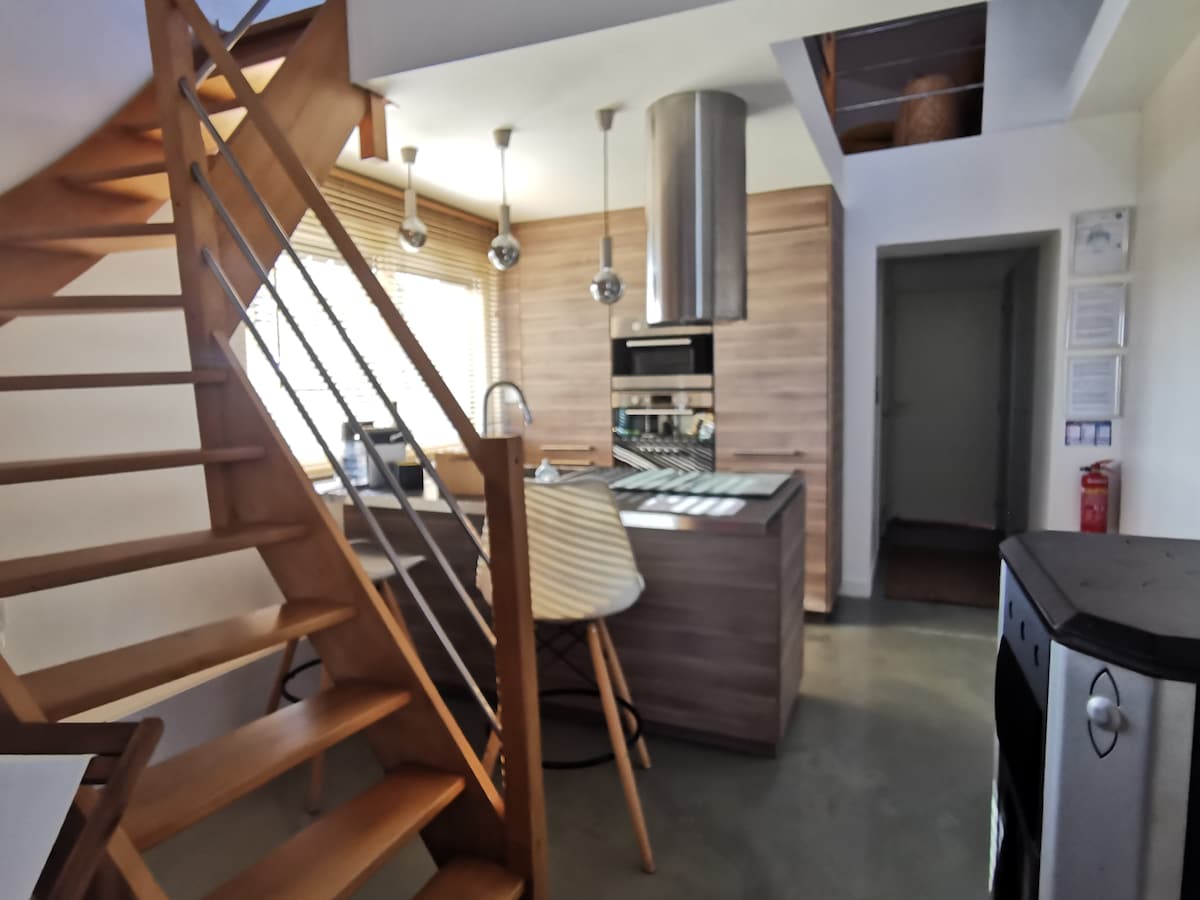 Beautiful industrial loft totaly restaured. Located in our house, the loft is completely private, you share the entrance hall and the backyard with us. The loft features 1 kitchen 1 huge bedroom with a 1m80 width bed and a mezzanine with the sitting-room view. There is a also a cosy reading corner and a beautiful brand new bathroom with an italian shower. 65 square meters in total with air conditioning. Access to the jacuzzi is optional for 20€ bathrobes included.