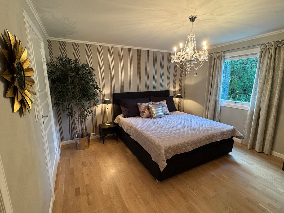 Large and bright apartment of 116 m² with high ceilings, large windows, 4 bedrooms, all with double beds. Fully furnished with modern kitchen, bathroom with washing machine/dryer and spacious living room with dining area for 8–10. Balcony, parking with charging, fast internet and short distance to Oslo city center (approx. 19 min). Forest, hiking trails, beach, golf course, spa, trampoline park and Kolbotn center just nearby. Perfect for families and groups of friends who want both peace and proximity to the city.