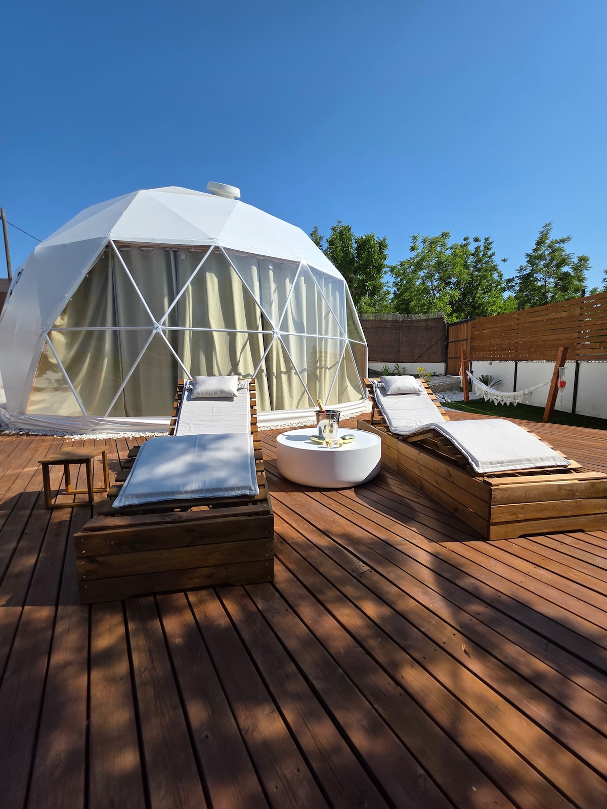 Welcome to Domo AWA, a unique refuge in the middle of nature, designed for you to live an experience of rest and total disconnection. Fully equipped with bed, private bathroom, kitchen and A/C, TV, ideal for couples. Outside, relaxation: private jacuzzi, barbecue, hammock, swings, chill-out area. At night, the starry sky and natural silence will give you a magical experience. AWA is more than a place: it's an invitation to reconnect with yourself and nature.