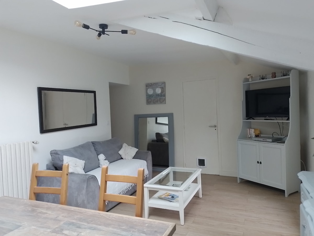 Charming accommodation along the Nantes to Brest canal, 5 minutes from the city center of Nort sur Erdre. Completely renovated, it includes a large living room with fully equipped kitchen, a bathroom with large shower, an upstairs bedroom and separate toilet, all overlooking a private outdoor courtyard with garden table. Rental per night: 65 euros (2 nights minimum). Weekly rental from Monday to Friday: 250 euros. Towels, sheets, linens provided: 15 euros/stay.