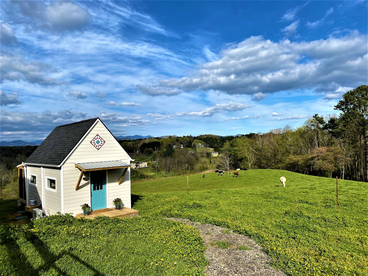 Check out our videos at crowleyfarmsdotcom or insta, crowleyfarms1. Just nine miles from downtown Asheville, this farm cottage has spectacular twenty mile views and is nestled within our farm's twenty four acres! The cottage is a sanctuary that offers beautiful design and affordable luxury in an amazing mountain setting. It is perfect during all seasons! Due to the health risks of our livestock, we are unable to host any animals, including service animals. We have a legal exemption.