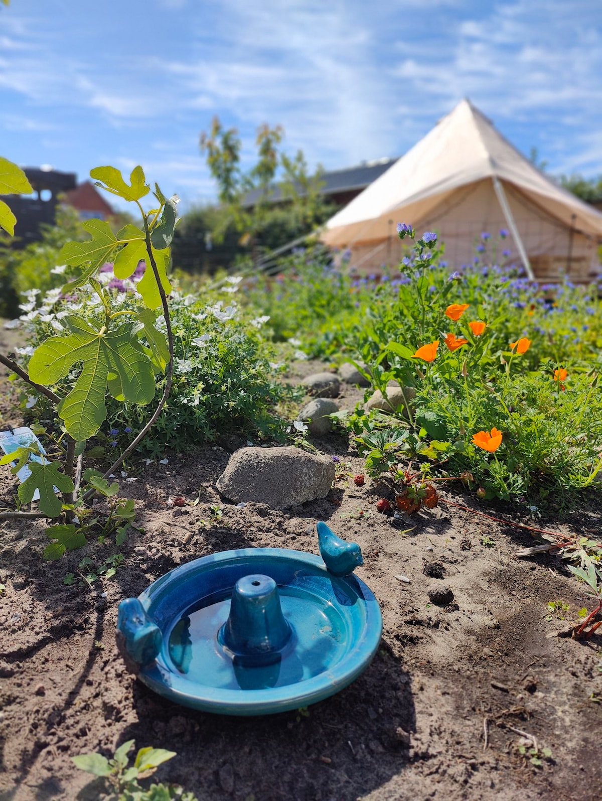 Discover our beautiful Amaroq glamping tent. Enjoy the relaxed atmosphere, our beautiful flower garden and each other. Share a glass of wine or other temptations from the fridge on the 1st floor. Stay in a garden in the center of Frederikshavn close to the ferry and the mud town. Enjoy North Jutland's gastronomic temptations, experience the raw nature and the unique light in the artist city of Skagen. REMEMBER you have the opportunity to charge your electric car and have your clothes washed during your stay with us. Welcome to Frederikshavn ✨🌄♥️