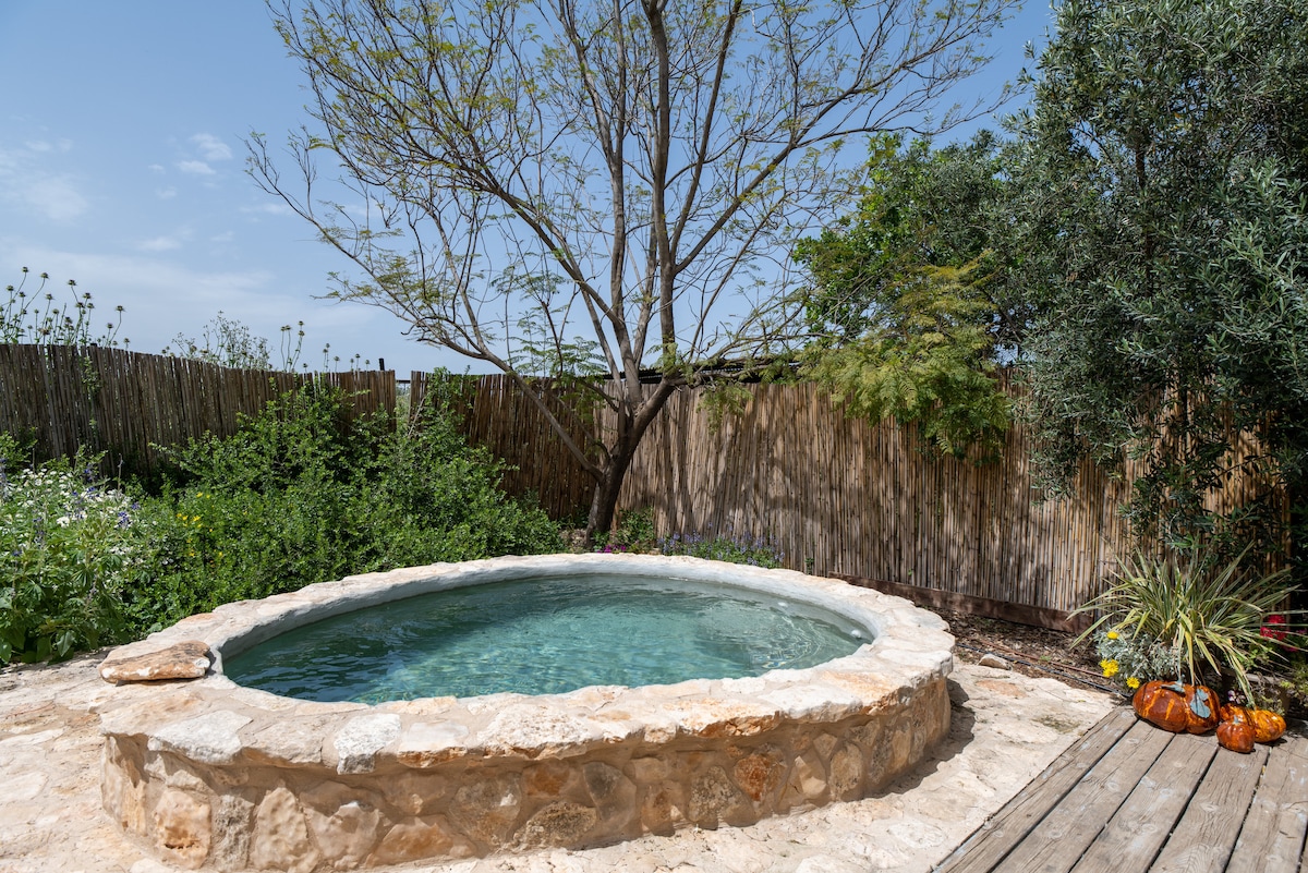 Welcome to Lavender | An intimate and beautiful unit surrounded by nature. We invite you to enjoy a unique and romantic retreat with a jacuzzi, and a beautiful outdoor heated pool. View of Tabor, 20-minute drive from the Sea of Galilee. ★"Definitely recommended! Sitting in the heated pool at night when it's cold out was a delight, and the jacuzzi is really fun." Please note: the room has no blackout shades, so you'll wake up gently with the morning light and birdsong. Perfect experience!