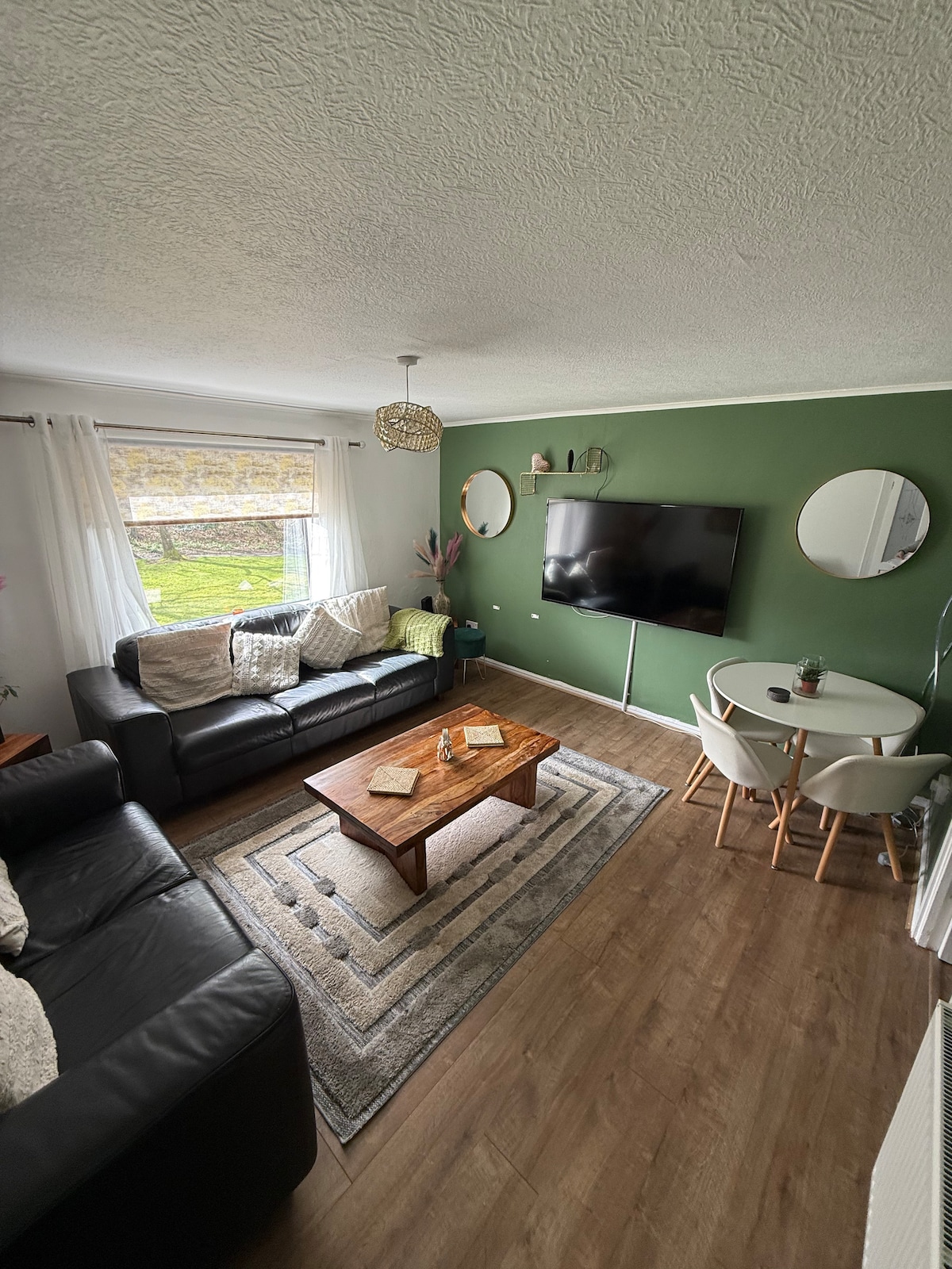 Newly refurbished 2-bedroom flat, ideal for families or solo travelers. Enjoy a bright open-plan living room with a fully equipped modern kitchen and cozy underfloor heating throughout. Both double bedrooms offer comfortable beds for a restful stay. Free parking is available right outside. Just a 10-minute drive to East Kilbride Shopping Centre, bus and train stations, and 25 minutes to Glasgow City Centre. Hairmyres Hospital is only 15 minutes away.