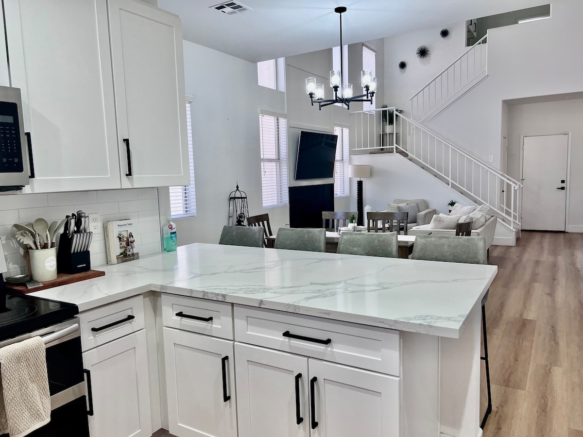 Single story house in the heart of southwest valley (5 miles/10 min to the Strip). Recently remodeled to include new kitchen, bathrooms, paint, floors and appliances. Free EV charging: NEMA 14-50 EV charging outlet installed in the garage (250V/50A) Early check in/out available if no one is checking in/out the same day, and is subject to $50 early/late fee. Pets are allowed with prior approval! NV20222650943 Expiration Date: 12/31/2025