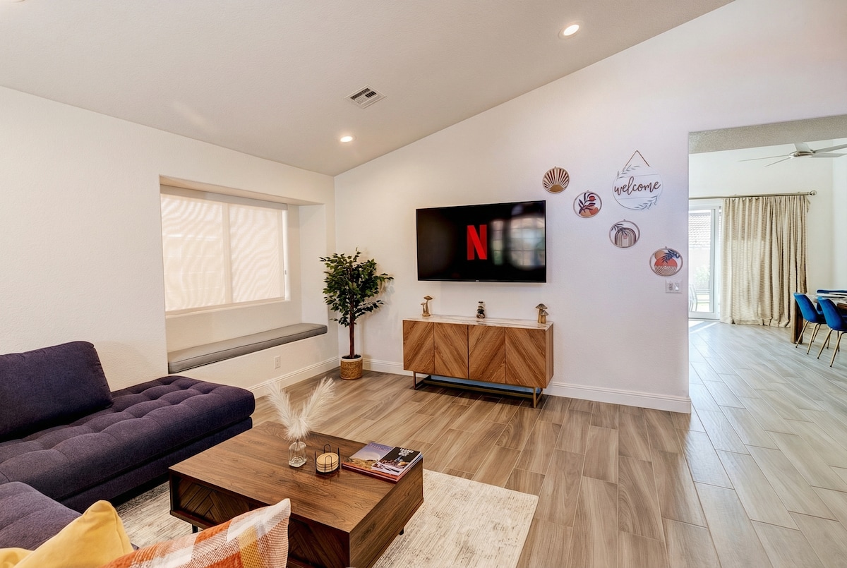 Freshly renovated Las Vegas home away from home for the whole family to enjoy. This single family home is located just 10-15 minutes away from downtown, Fremont Street experience, the Strip, and local attractions. Perfect for unwinding after a day of exploration or night of entertainment. Experience Vegas like a local with the convenience of being close to the heart of the action yet far enough for a peaceful relaxed stay. Ideal for families or groups this home promises a memorable stay.