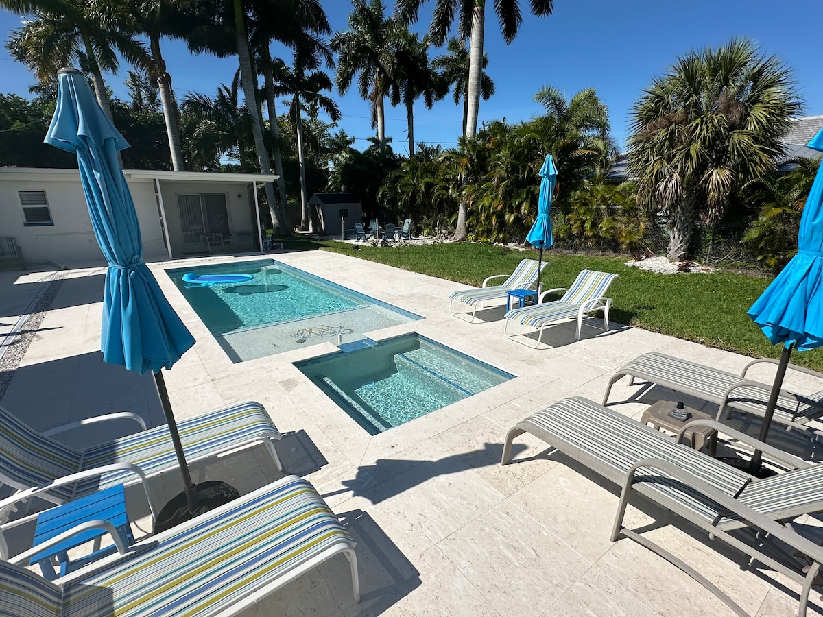 Unwind in the privacy of your very own tropical oasis in the heart of Naples Park/Vanderbilt Beach area. This sun-filled south facing home showcases a new pool w/heated spa w/wrap around sundeck for the ultimate relaxation. This zen-like 2 BR (Kings), 2 BA retreat is close to Vanderbilt Beach and Mercato is just minutes away! Newly renovated and beautifully decorated. Enjoy your morning coffee from the lanai, the perfect place to contemplate the ultimate decision: Beach or Pool Day?