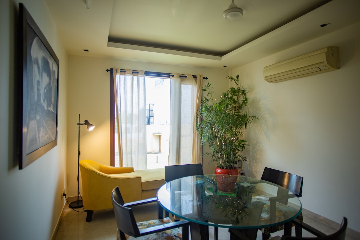 Relax in our cozy modern 1BHK apartment with sunrise view. Ideal for Students, solo travelers, or business guests & family. this fully furnished space includes a comfy queen bed, Wi-Fi, air conditioning, and a functional kitchen. Close to airport and transport. Safe, quiet, and perfect for short or extended stays! 30 min away from the airport. 30 min away from dwarka sec 21 (blue line) metro station. 40 min away from city center.
