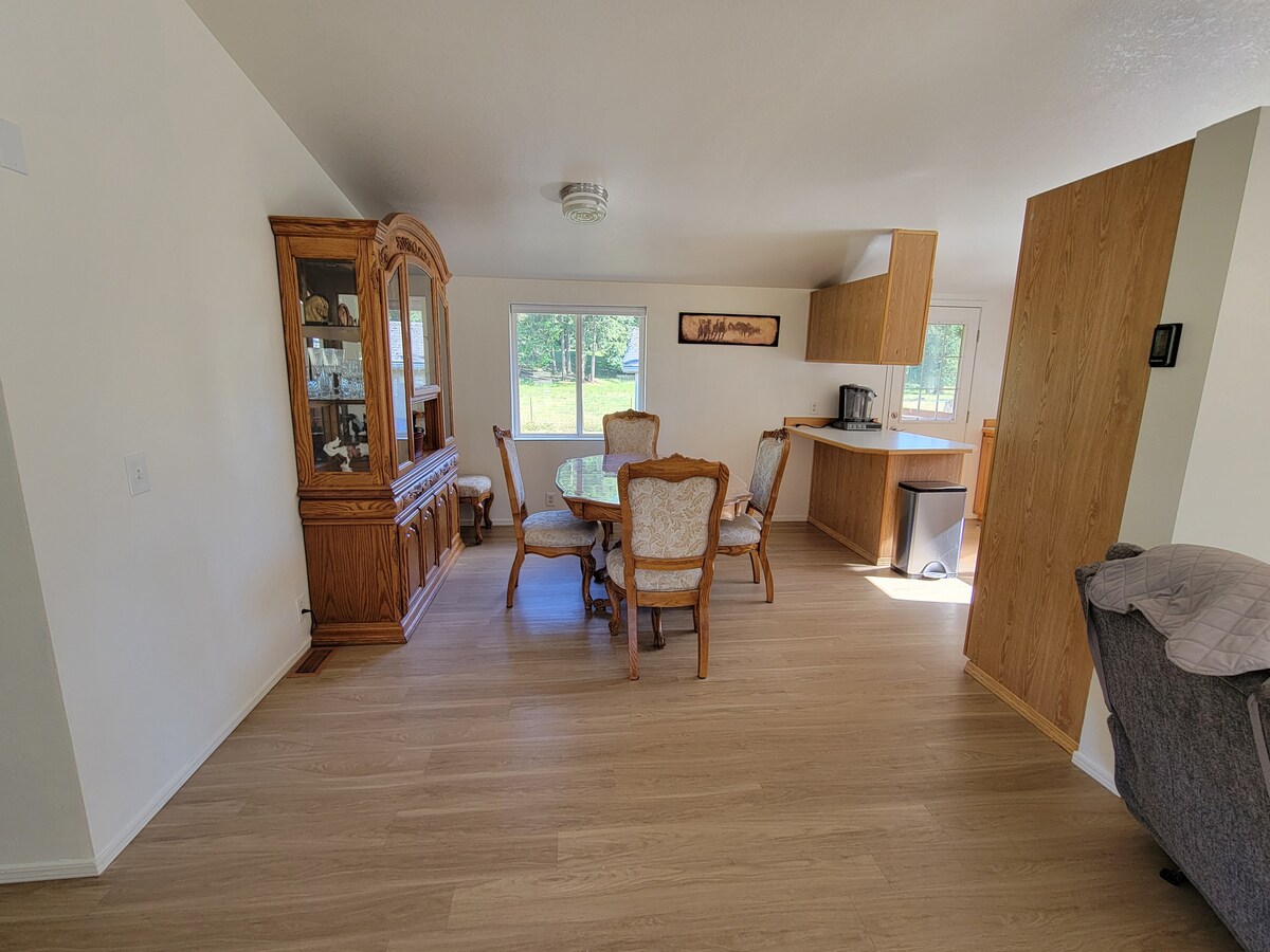 This welcoming home is conveniently located steps from all the shops dining and entertainment Yelm has to offer. Feeling outdoorsy but want to stay local? Take a stroll down the Chehalis Western trail or down the Deschutes falls trail. If you’re looking to explore absolutely everything Washington has to offer the home is located 1.5 hours away from the beach, 1.5 hours from Mt.Rainier National Park and 1.5 From the Olympic National Park.