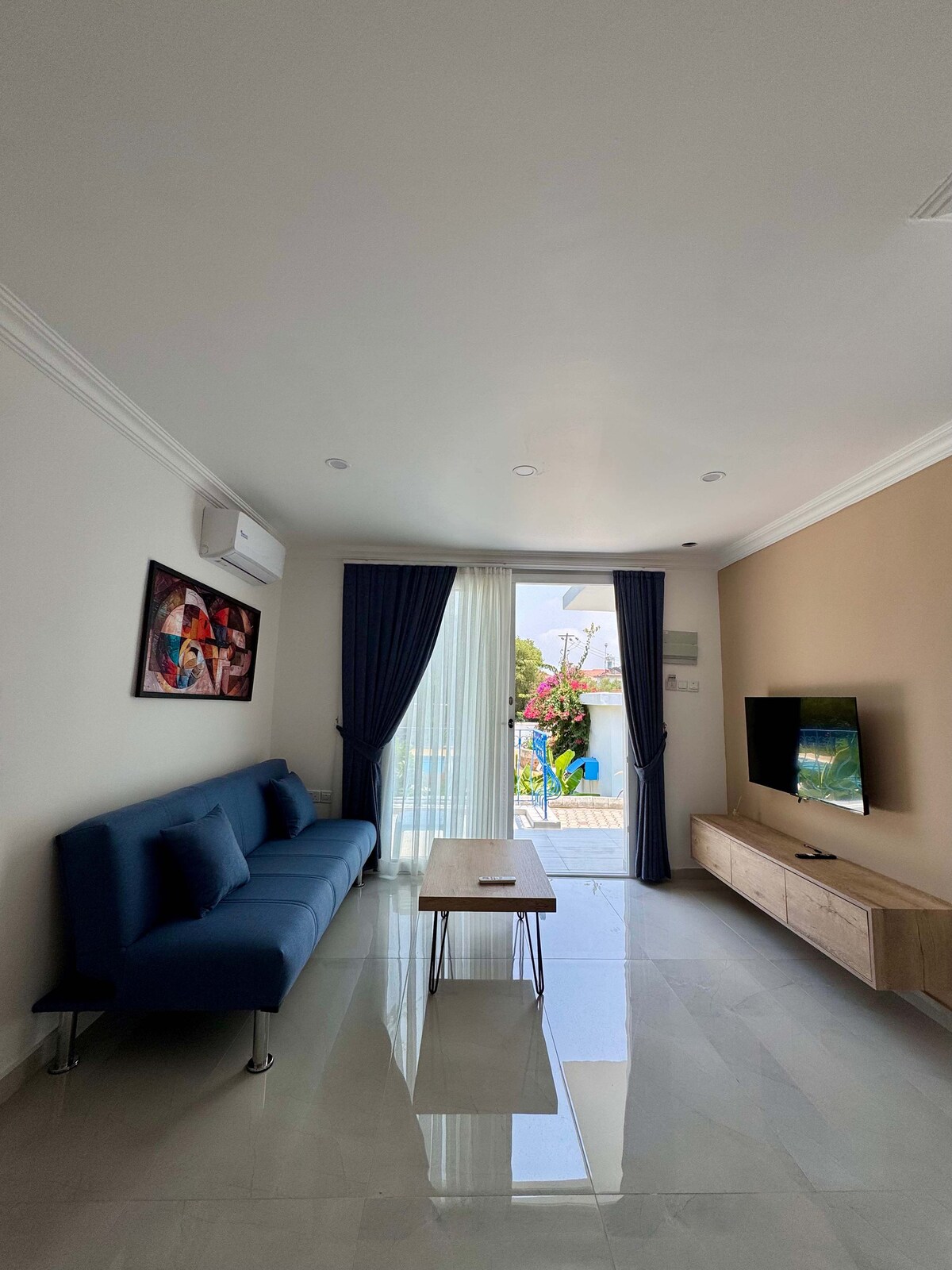 Modern two-storey holiday home in Kyrenia, only 200m from Kervansaray Beach. Perfect for couples, small families, or solo travelers. Relax in your private garden, watch stunning sunsets, walk to the beach, or enjoy nearby cafés and restaurants. Nearby: Kervansaray Beach – 200m Merit Park Hotel & Casino – 300m La Nouba Lounge & Beach Club – 500m Kyrenia Center – 9km Amenities: Sleeps 3 · 1 bedroom + sofa bed · 1 bathroom · Air conditioning · Fast Wi‑Fi · Smart TV · Private parking
