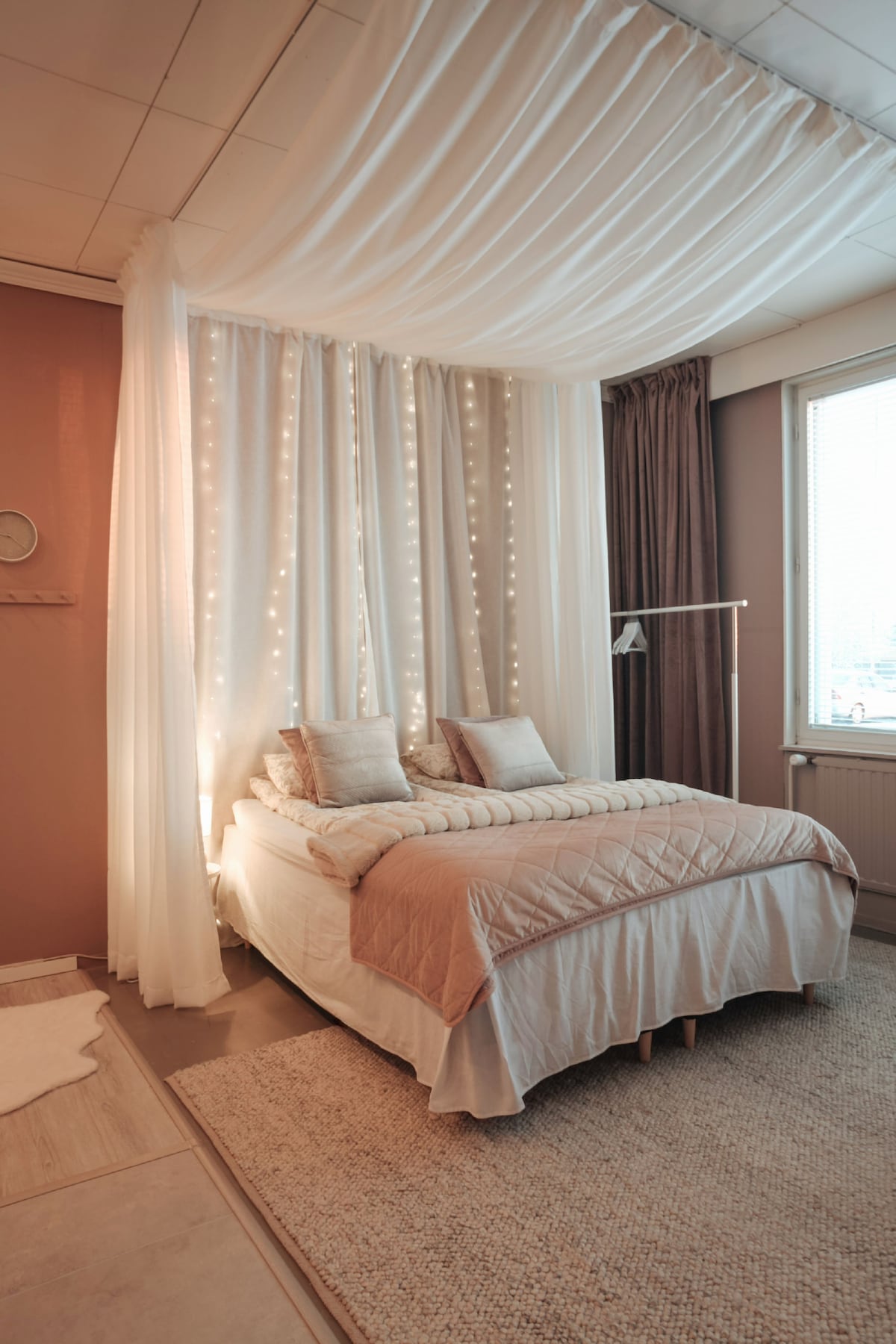 A room in a hotel located in the center of Kemi near the river bank. The hotel has a spacious terrace, saunas for free use, a spacious kitchen and even a snooker table. If you don't have time to go to the store next door, you can also use the in-house snack machine. Free Wi-Fi in all rooms. Private double room with shared bathroom. The bathrooms are located in the immediate vicinity of the room. This room has its own refrigerator.
