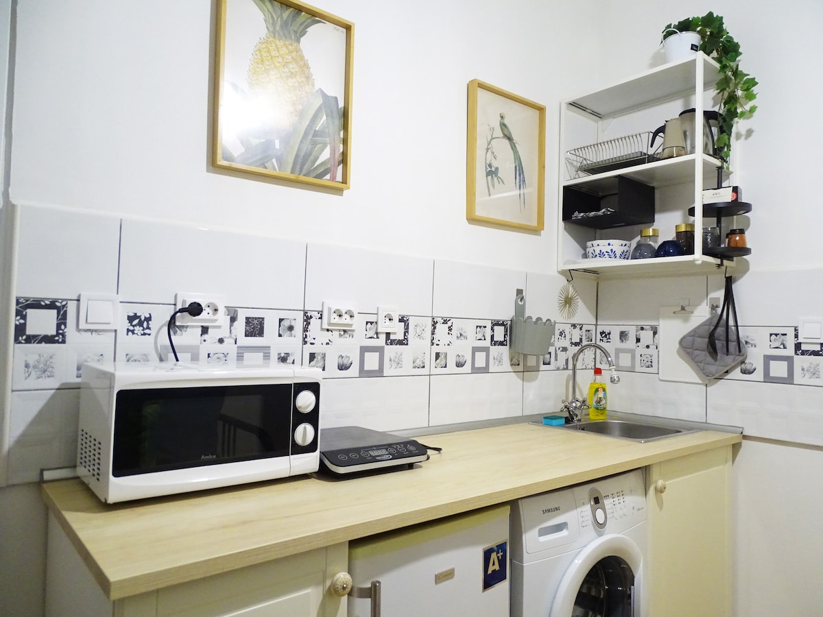 Have you ever dreamed about an artist's extravagant studio? Feel the vibe and try a famous Hungarian painter Lajos Vajda's renewed studio loft, facing the city biggest park Városliget. Park for free in our underground garage and cook in our kitchen with striking wood cabinets and exposed brick. A factory-chic chandelier hangs above a modern dining table while a living area basks in natural light from industrial windows. Beautifully designed in 100 -years-old house, near to Heroes square.