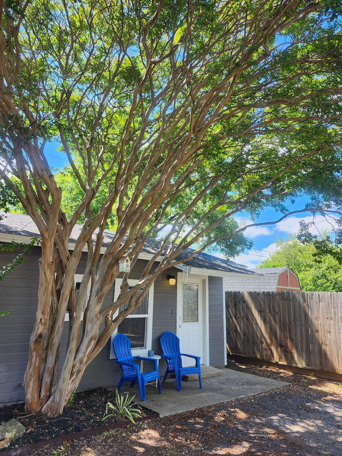 Our guest house is in the heart of Denton, a block east of the Bell Avenue Historic District, with all the amenities to make your time in Denton relaxing and meaningful. This private, smoke and pet free retreat offers natural light and your own designated parking spot. Stay within two miles of UNT, TWU and the unique Denton Square. You will enjoy unique features that will make you feel at home including a stocked kitchen and a record player with music from local Denton bands.