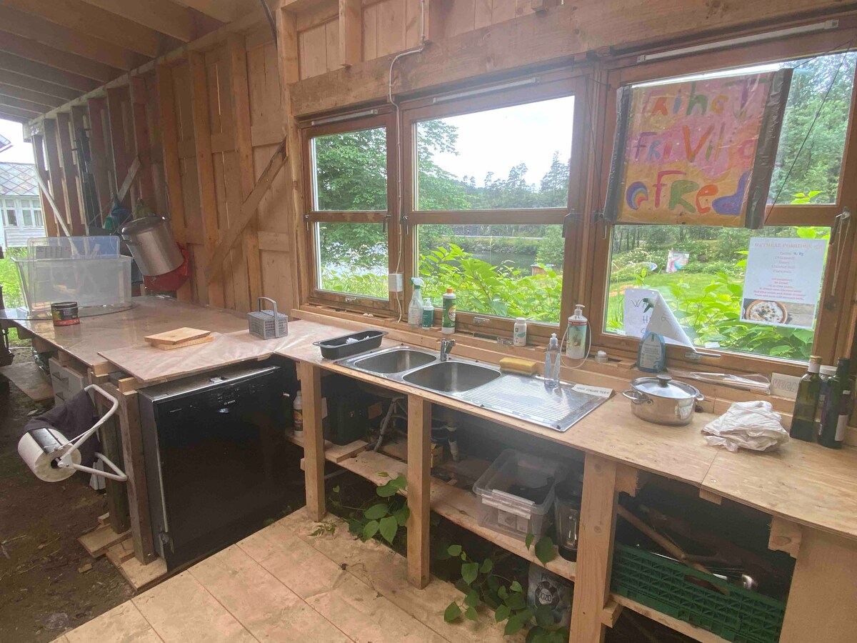 Waterfront cabin – attached to a swimming dock. Street kitchen