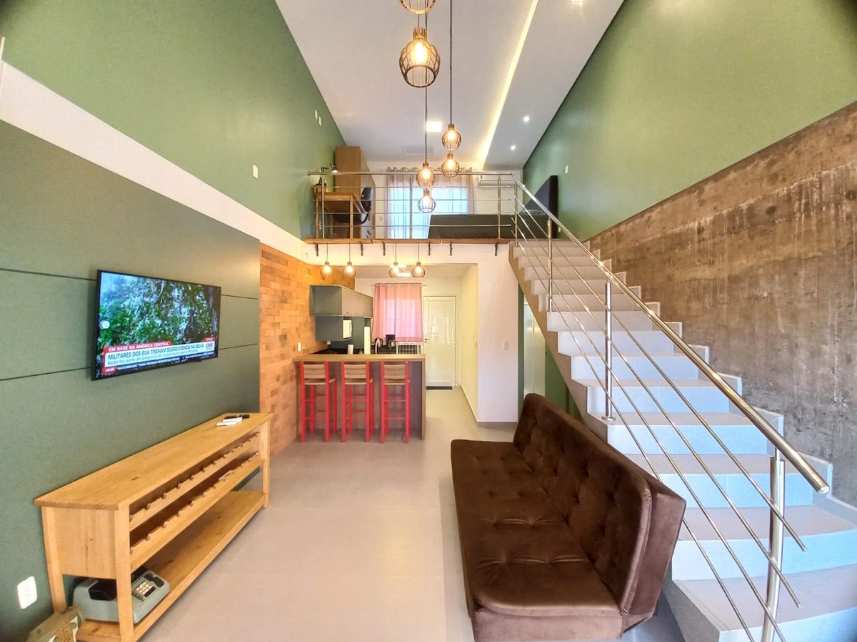 A Casa Toscana é um loft único com estilo próprio. Ambientes integrados, que permite muita interação! Proporciona aconchego e comodidade, com muita luz natural e ventilação cruzada, além de ar cond. split/ 18.000 BUT´s (quente e frio). Smart tv de 43´, internet rápida/ 420 megas. Cozinha completa, para quem gosta de preparar boa comida, inclusive massas e pizzas! Cama queen. Home office; escrivaninha, cadeira e luminária, para o trabalho ou uma boa leitura! Água quente nas torneiras internas.