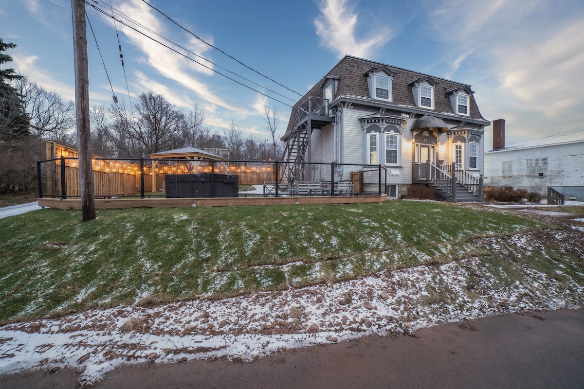 Welcome to Riverside Inn! This historic building is situated along the banks of the East River in the heart of downtown New Glasgow. This charming Inn features 7 luxury rooms & suites and is only steps away from New Glasgow's finest restaurants and shops. Sit in the hot tub and gaze over the beautiful East River or relax around the fire pit. This posting is for Unit 7. Beautiful unit with great views of the River. 24/7 access to shared hot tub, Sauna & full kitchen.