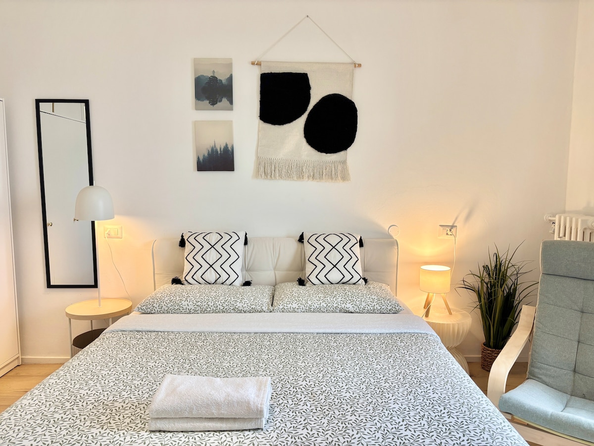 An elegant minimalist and design apartment complete with all the main comforts for a comfortable stay in the city and just a few minutes by metro from the center of Milan and the main points of interest. The house is at the ground floor and has a beautiful outdoor area reserved for guests. It is possible to park a car free of charge inside the property in a fenced area. The area is very peaceful, quiet and private. The home is a 5-minute walk from the MM3 Maciachini, MM5 Marche Zara metro