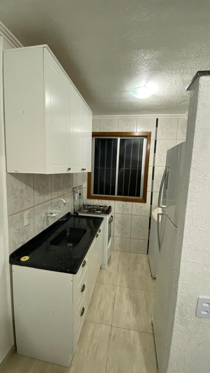 Apartamento mobiliado em condomínio fechado com lindo jardim, uma vaga de estacionamento e portão eletrônico. Excelente estadia para quem precisa trabalhar no distrito industrial de São Leopoldo, empresas como Stihl, Taurus, Klabin, Ensinger, Delga, Rexnord, Copé, entre outras, estão localizadas muito próximas. Possui mesa de jantar, sofá aconchegante, televisor 40", cooktop 5 bocas, refrigerador, máquina de lavar roupas, espaço para secar roupas, mesa para notebook e wi-fi disponível.