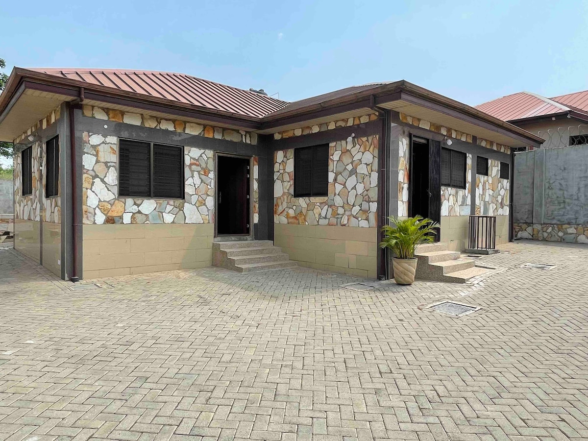 Welcome to this stylish two-bedroom apartment is perfect for individual and family stays. The unit is conveniently situated from the Oyibi Police Station and Valley View University. Enjoy peace of mind with 24-hour security.