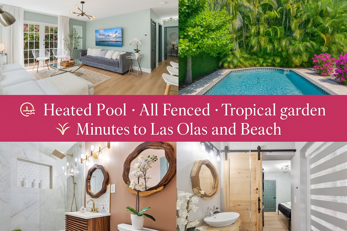 Welcome to Fox Garden, a FoxStays marvel. This fully modernized, fenced, one-floor oasis is nestled in the heart of Fort Lauderdale. ★ Private haven with a heated pool spa and garden ★ The beach- 10 Mins ★ Las Olas Blvd - 9 Mins ★ State-of-the-art, fully-equipped kitchen ★ A beautiful new shaded pergola with gentle fan above that keeps every breeze a blessing ★ Rapid WiFi ★ Up to 5 cars ★ NO PARTIES ★ We welcome your four-legged pets ★ Beautiful cool Florida Room W Foosball & Games!