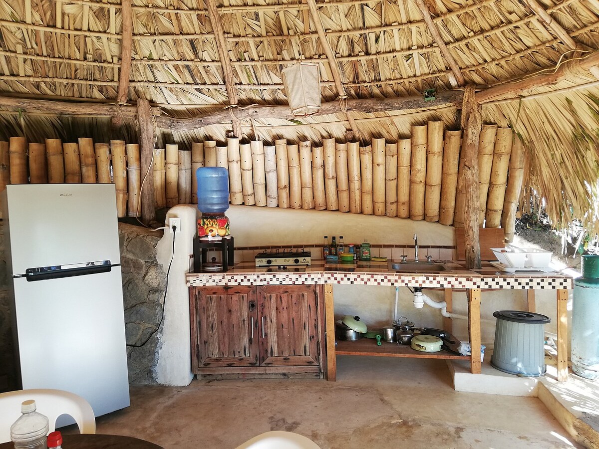 La Cabaña Rinconcito, a few meters from the beach, has 2 double beds, hammocks, WIFI, purified water, its own equipped kitchen, refrigerator, and private bathroom. Surrounded by trees, their animals and birds, you feel part of nature. If you like camping, this rustic cottage with its palm roof will be for you. The bedroom has a mosquito net on its comfortable bed, and also the bed downstairs in the living room. There is ocean view from the hammocks in the living room.