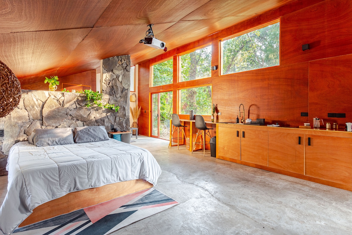 Welcome to Ixaya, a luxury loft designed to offer comfort, privacy and an atmosphere of deep relaxation in the middle of Tepoztlán's nature. Here you will find an ideal retreat to disconnect: king size bed, private heated Jacuzzi (extra cost), equipped kitchen, large windows and two exclusive gardens that fill each space with light and serenity. Located in a quiet and safe residential development, just 12 minutes from downtown, you can enjoy its unique energy.