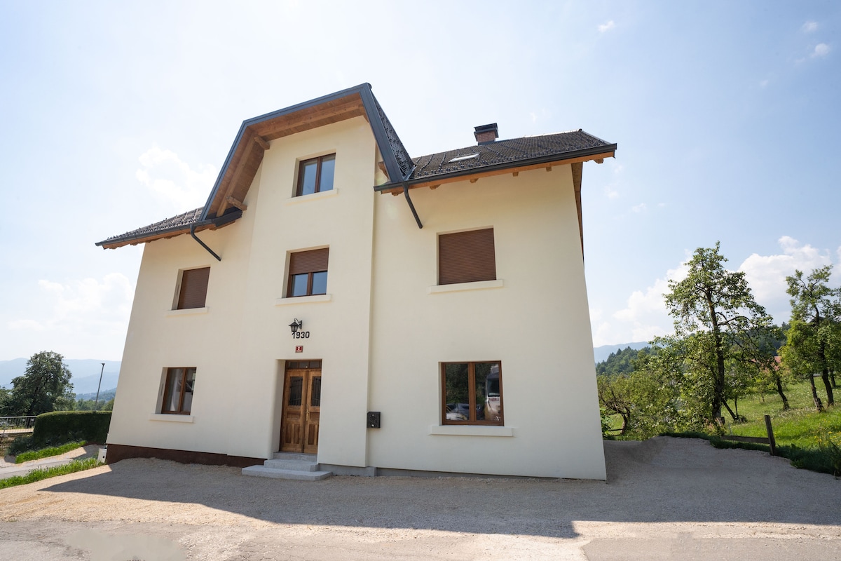 Our 2 bedroom apartment with 1 bathroom, kitchen, spacius living room with couch and dining table, A/C, and spacius patio is located just around 100 meters from Lake Bled (swimming area). It's located in very peaceful area. It has it's own entrance and is located in our house (so we're always nearby to help). We're a family of 5 and will be happy to host you. Sustainability: We produce more energy than we use. Tourism tax (3,13 for adults per day, 1,56 for children above 7) is not included.