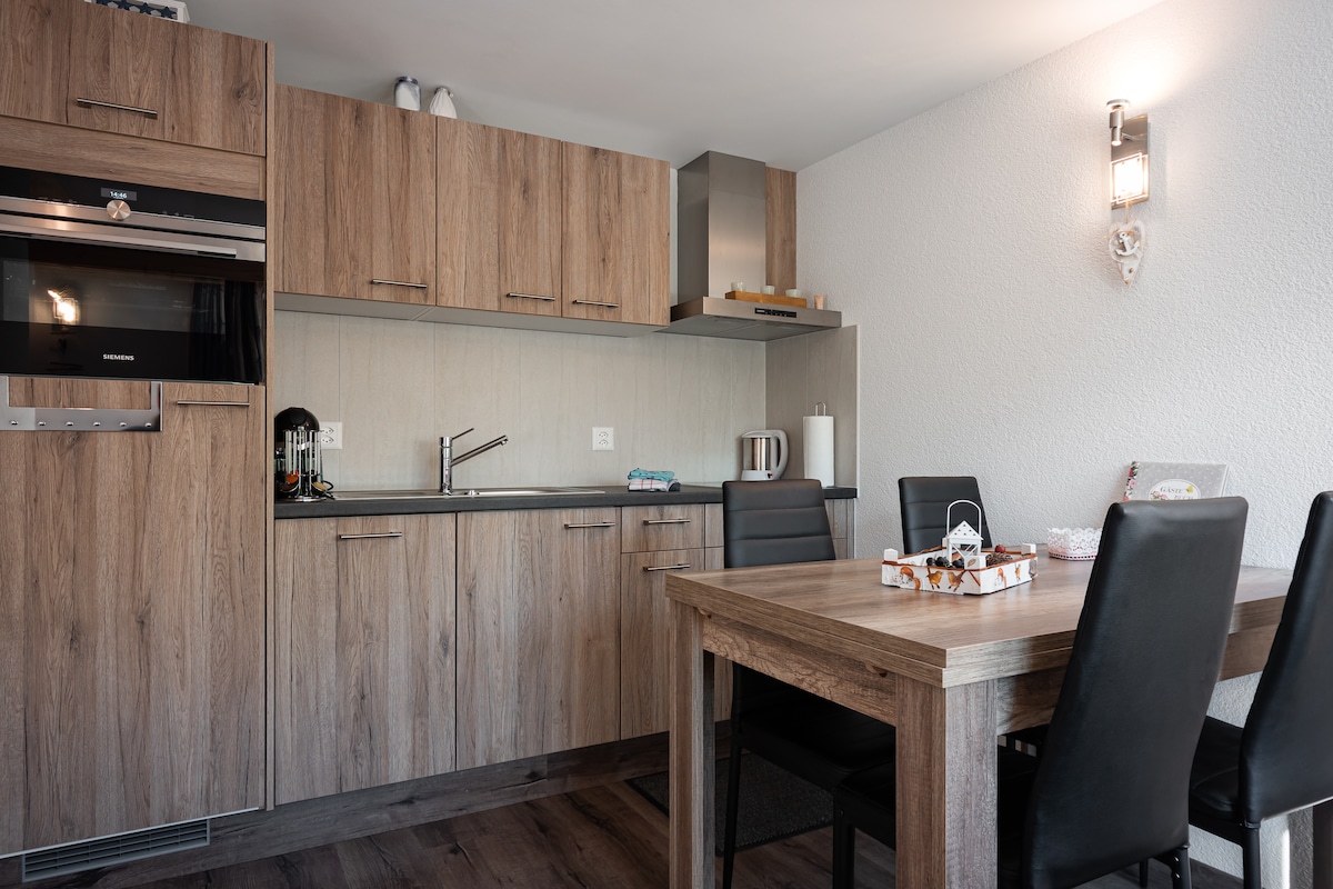 Room with spacious terrace. Kitchen: Fully equipped kitchen with dishwasher, stovetop, microwave, oven and coffee maker. Drinks are provided free of charge for you. - Living area: sofa bed. Free Wi-Fi, large smart TV -Bathroom: Spacious toilet with shower and large mirror. - Lighting: Atmospheric LED lighting The room offers you the perfect combination of comfort and relaxation in its own style. Ideal for couples (+ child), solo travelers or business people