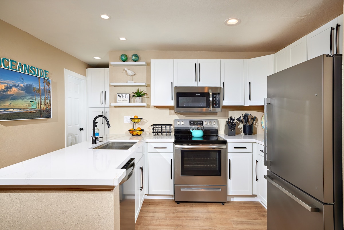 ⭐️Welcome to "VIBE" insanely cool Mid-century home with a cinematic layout. Overlooking Vista Village, known for its iconic brewery scene. Relax on the 21ft sectional with a large screen TV. Plush bedding through out. 🌈 Ace views, spectacular sunsets, parking, outside dining, BBQ grill & fire tables. 🚶Walking distance to restaurants & breweries. 👌 Beach 7 miles, LEGOLAND 12.60, Safari Park 18.2, Sea World 43 miles, Zoo 40 miles, SD Airport 40 miles, Wineries 35 miles, Disney Land 71 miles.