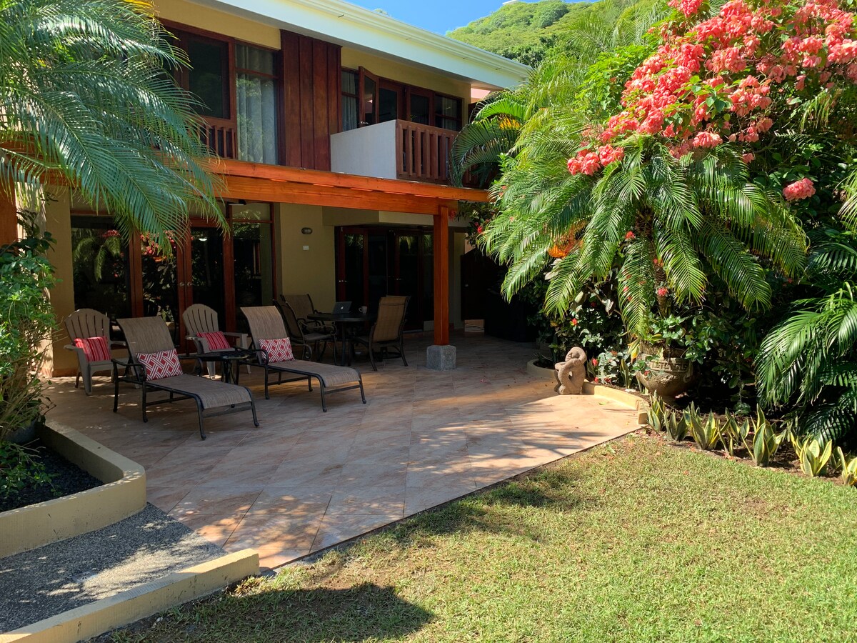 One of the best ocean and mountain views in Playas del Coco! We welcome everyone! Perfect for couples, families and remote workers. Fully equipped house, located at the top of a mountain inside a gated community, 10 minute walk to the beach. Grocery stores, restaurants and stores nearby. Short drive from Liberia Airport (20 min). Enjoy a concert of birds and monkeys every dusk and dawn, spectacular sunsets views of Playas del Coco. Close to nature, but not far away from commodities!
