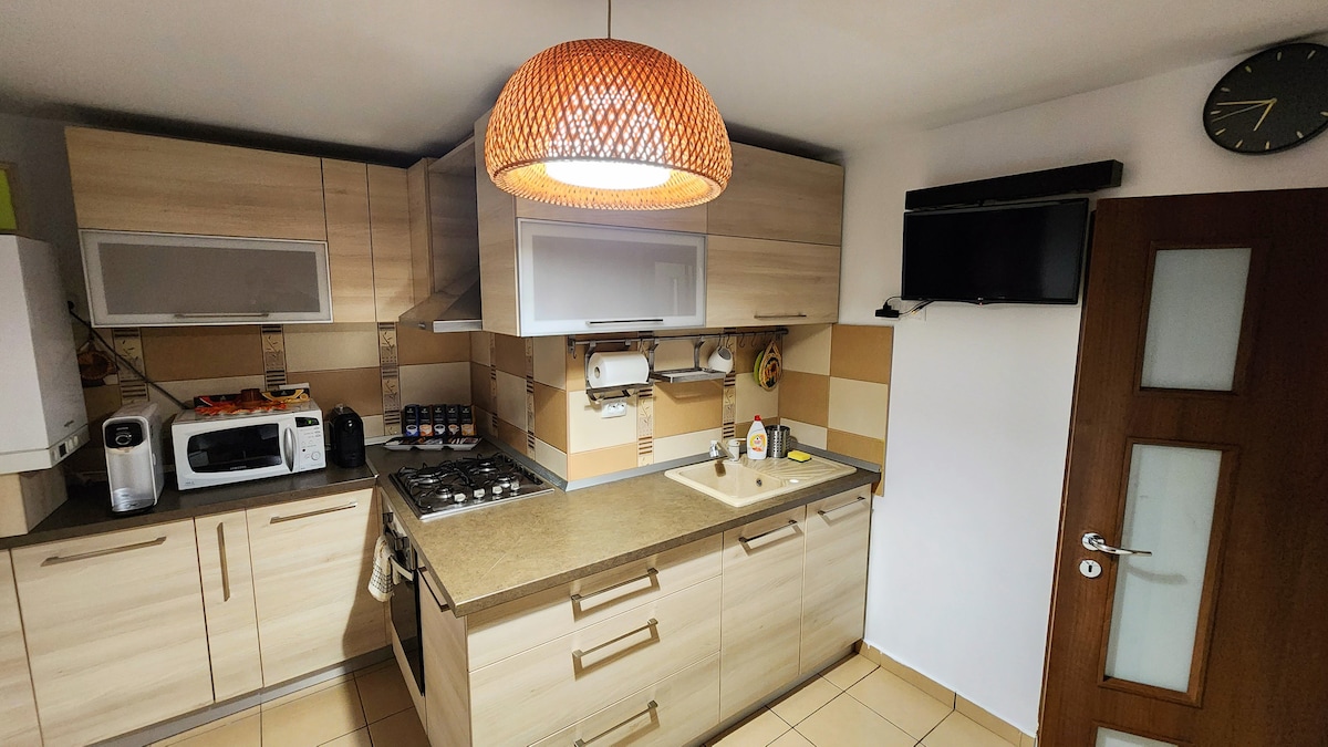 Over 90 positive reviews! 10 minutes to Therme 5 minutes to the Airport A cozy location, only 1 minute walk to the main bus station so you can fast travel to/from the Airport, Therme (biggest wellness, relaxation and entertainment center in Europe), Otopeni Swimming Sports Complex or Bucharest Old Town. FREE high speed internet is available (WiFi). FREE streaming services: Netflix, HBO MAX, Sky Showtime + Spotify