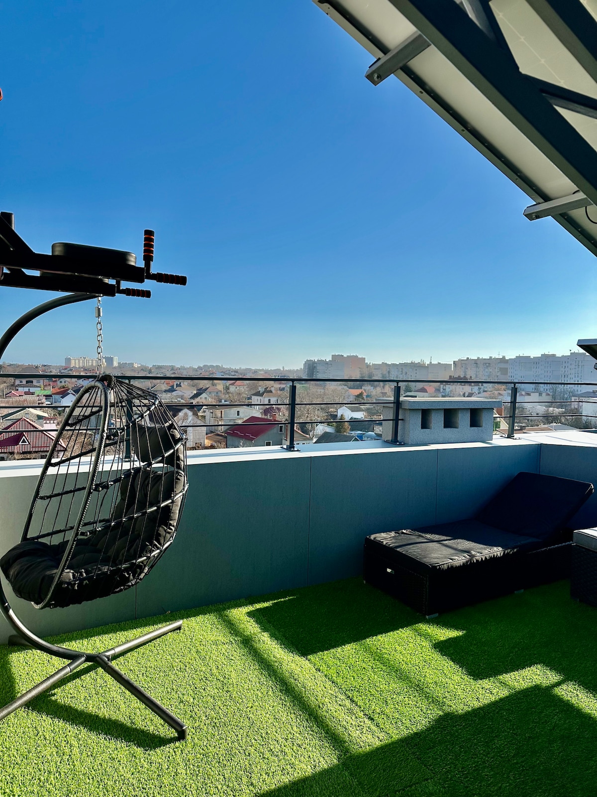 A very stylish designer apartment with an amazing city and sea view that can be enjoyed from the open terrace. Equipped with modern technology and good quality furniture. 20 minutes walk from the beach. For those with good taste and appreciation for nice things. Стильна квартира з дизайнерським ремонтом з чудовим видом на місто та море. Оснащена сучасною технікою та якісними меблями. 20 хвилин пішки до пляжу. Для тих, хто має гарний смак та цінує красиві речі.