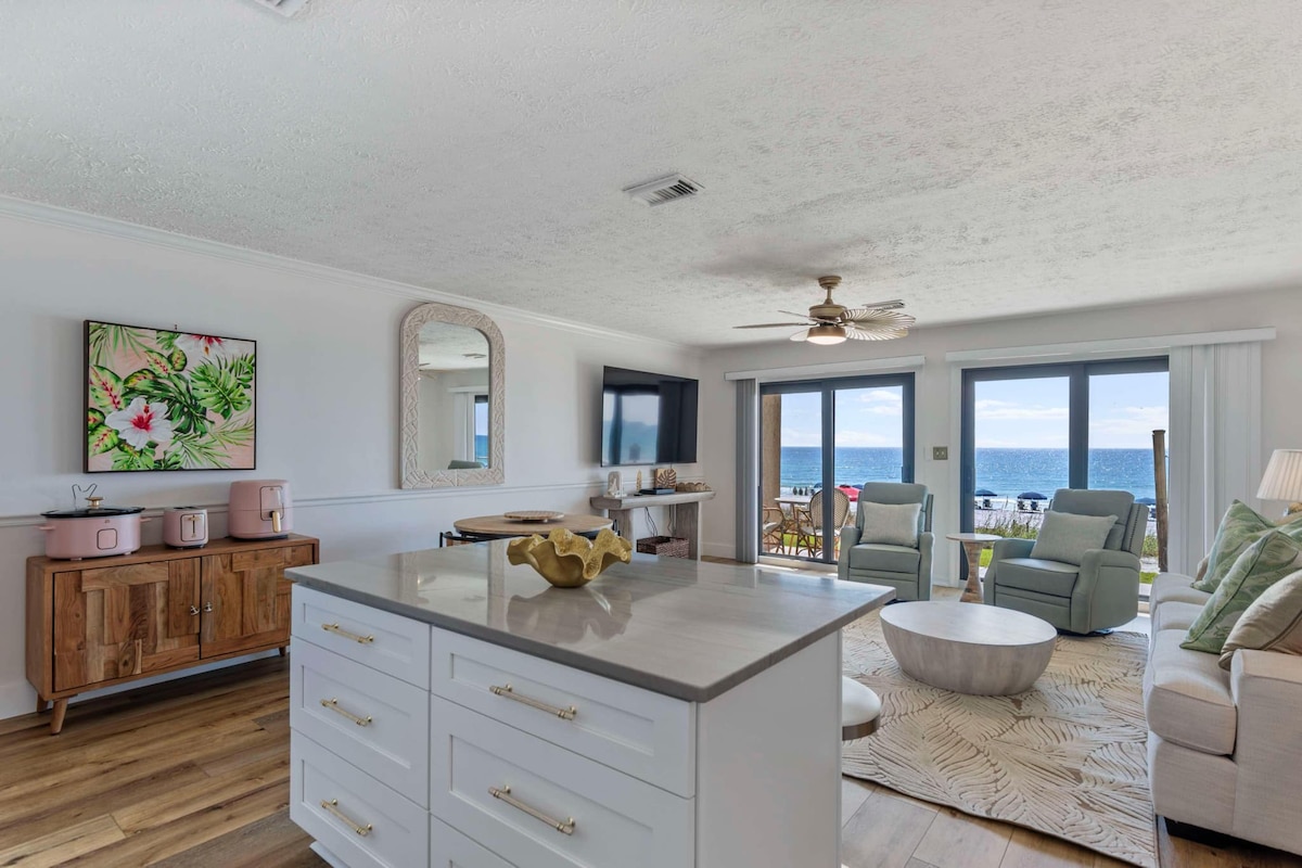 This recently renovated 2-bedroom, 2-bathroom waterfront condo is available for rentals at Dolphin Point on Holiday Isle. Enjoy stunning views of the harbor from this prime location right on the water, which also provides convenient access for launching kayaks or paddleboards into the harbor. This condo includes free Wi-Fi, access to both the pool and the beach. Parking is PAID ($50 per car, per reservation)