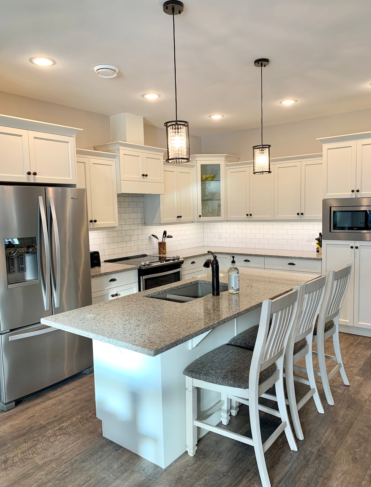 This luxurious, rancher style home features an open concept living space in one of the most convenient locations at the cottages! Enjoy your stay in a comfortable, spacious home with a large living space and large bedrooms. Smart TVs in every room with premium cable & Netflix included! Huge private patio to relax on and a sunroom to enjoy. Two paddle boards included! Beach wagon, beach chairs, beach tent. Less than 1 minute walk to the pool & park, 3 minutes to the beach. Double garage included