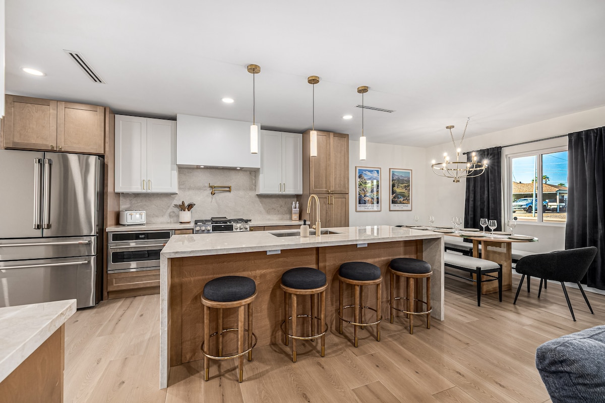 The Eden is a newly remodeled modern desert oasis only minutes away from Old Town Scottsdale! This open floor plan is perfect for young adults or families to enjoy. Complete with a heated pool, hot tub, gazebo with bar seating, fire pit, cornhole, BBQ grill, and outdoor dining with tropical views of palm trees and mountains! This is the ultimate private resort vibe, with picturesque spots around every corner!