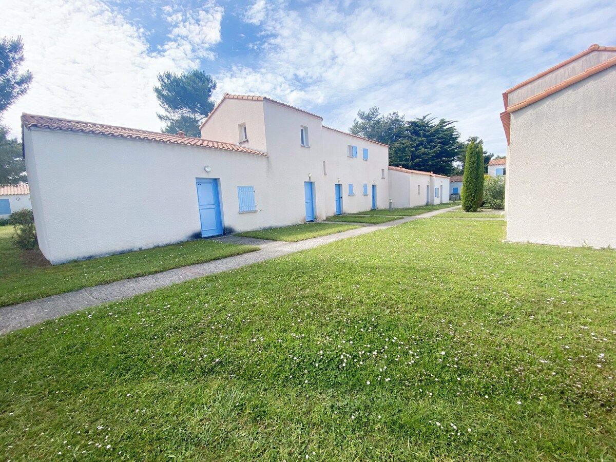 Located in a very quiet residence with swimming pools in a wooded park, come and enjoy this pleasant little single-story townhouse composed of a living room with a sofa bed for two people, an open kitchen, a bedroom, a bathroom and a separate toilet. A small terrace allows you to pleasantly extend your evenings. The proximity of the bike paths makes it easy to get around town or to the beach, which is 2 km away. Pools accessible from June 1 to September 15.