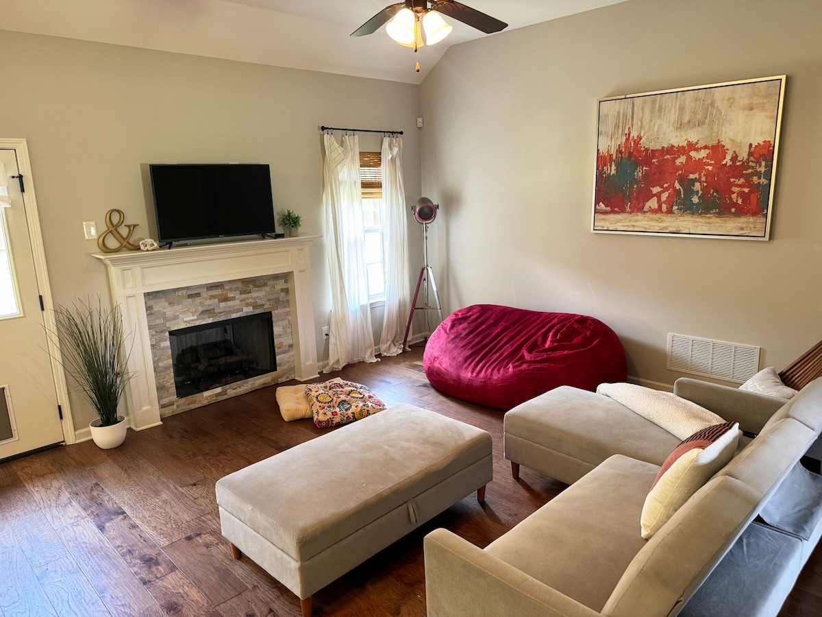 Renovated two-bedroom home in East Memphis on a quiet residential street. Five minutes to the University of Memphis and Botanic Gardens. 15 minutes to Graceland. 20 minutes to Beale Street and downtown. The highlight: a fully fenced backyard with a fire pit, perfect for pets and evening cookouts. Two queen bedrooms, a futon for extra guests, and a fully stocked kitchen. Self check-in via smart lock. Covered parking. High-speed WiFi. Washer and dryer in the home. Pets welcome, no pet fee.