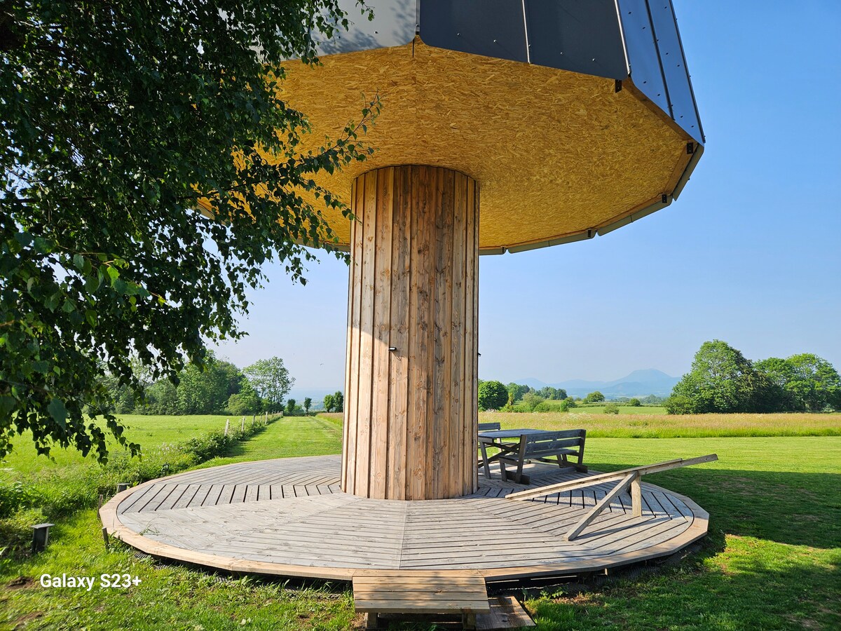 Reconnect with nature at this unforgettable escape with volcano views. Contemporary yurt for 2 people in a small hamlet located between the UNESCO World Heritage Puy de Dôme and the Sancy Massif Close to ski resorts, and 20 minutes from Aydat and Chambon Lakes, both classified "Blue Flag" Numerous hiking and mountain biking trails from the accommodation, or a few kilometers from many tourist sites (Murol castle, St Nectaire, Issoire…