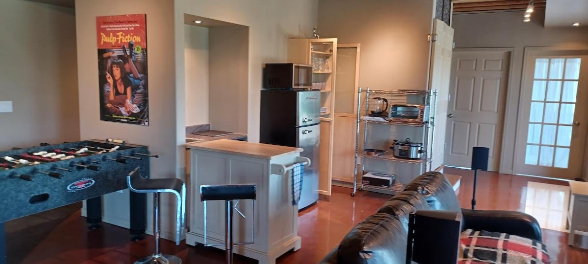 This is a loft above the double garage. It is 13 steps up to the loft which is private, spacious and comfortable. Recently renovated washroom which includes a toilet, sink and shower. The loft comes with satellite tv, mini fridge, microwave, Keurig, bbq, water dispenser, heat and air conditioning. There is a trampoline, fire pit and wood as well as a ping pong table in the garage. Quiet area. It is 3 kms to the beach in the Wasagaming townsite which is in beautiful Riding Mountain National Park.