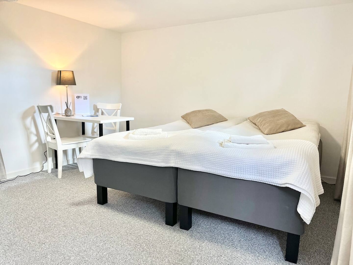 Cozy and fresh apartment with both balcony and separate patio. Bedroom with double bed for two people as well as a sofa bed in the living room for two people. There's also a travel bed for the really little ones. Bathroom with shower, washing machine and space to hang clothes. Fully-equipped kitchen with dishwasher, stove, oven, microwave, fridge/freezer and a cozy and bright corner with dining table.