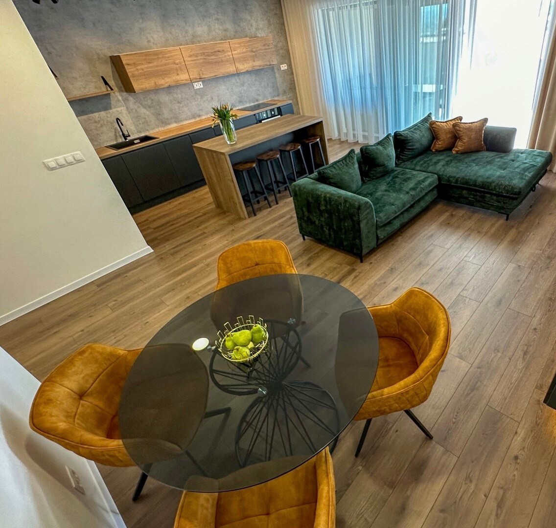 Luxury apartment in "Glamour" style with fully equipped kitchen, two bedrooms, separate bathroom from the toilet and a beautiful view of the upper Nitra. Parking is included in the price for 2 cars directly in the premises of the building, which is located in the very center of Bojnice. The town of Bojnice is one of the most sought-after locations in Slovakia. It has a beautiful castle, spa, the oldest ZOO, the Čajka v oblakoch viewpoint and, last but not least, many other attractions such as the Prepoštská cave and the like.