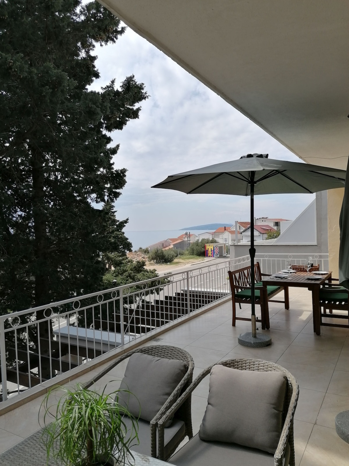 Hi! We have nice apartment with sea view and big terrace in Gradac, Dalmatia. 40 km from Makarska to south, 10 km from beautiful Baćina Lakes where is possible to arange boat trips or paddle surf. Apartment is 3-4 min. from the sea by walk, with safe parking, free internet... Nice beach, clean sea, good acomodation and good price. Welcome!!