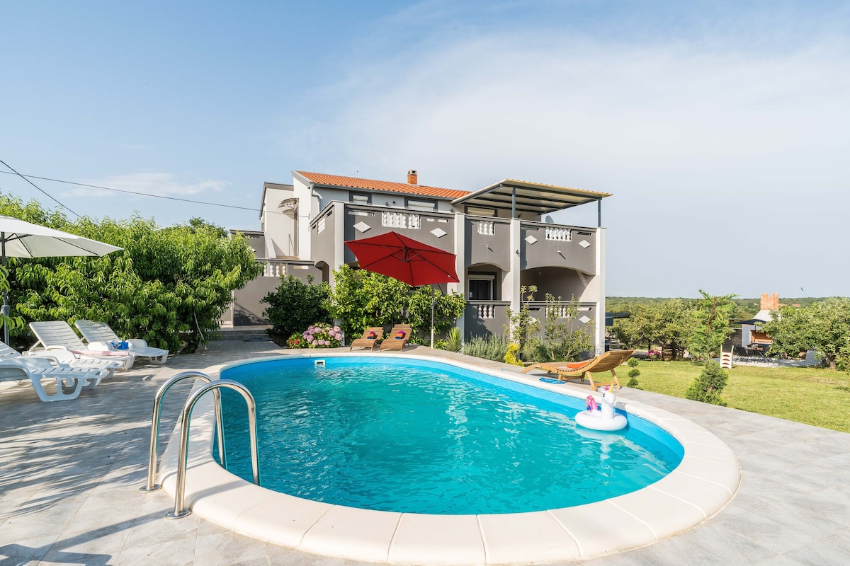 Entire house with a pool, located in Poljica, near beautiful towns of Zadar and Nin. Three bedrooms and two bathrooms. Peaceful and quiet, away from traffic and city noise. Variety of nearby beaches (sand, pebble, hidden), all available within 7-20 minutes by car. National parks with all their beauty are just an hour away. Or you can just rest by the pool.